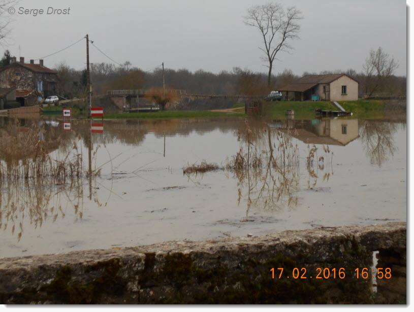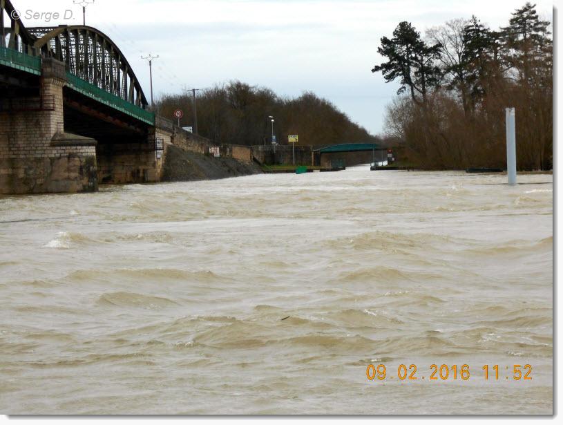 Voici quelques photos de la Seille en crue faites par notre ami Serge qui habite presque dans le secteur. On peut remarquer que l'écluse de la Truchère est sous l'eau et que le ponton d'attente à l'aval est bien isolé.