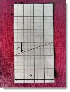 Comme il y a 4 carreaux de chocolat sur une ligne : en découpant la tablette en biais comme indiqué sur le schéma, le premier carreau de la quatrième ligne est coupé aux 3/4 de sa hauteur (il s'agit tout simplement du théorème de Thalès) :