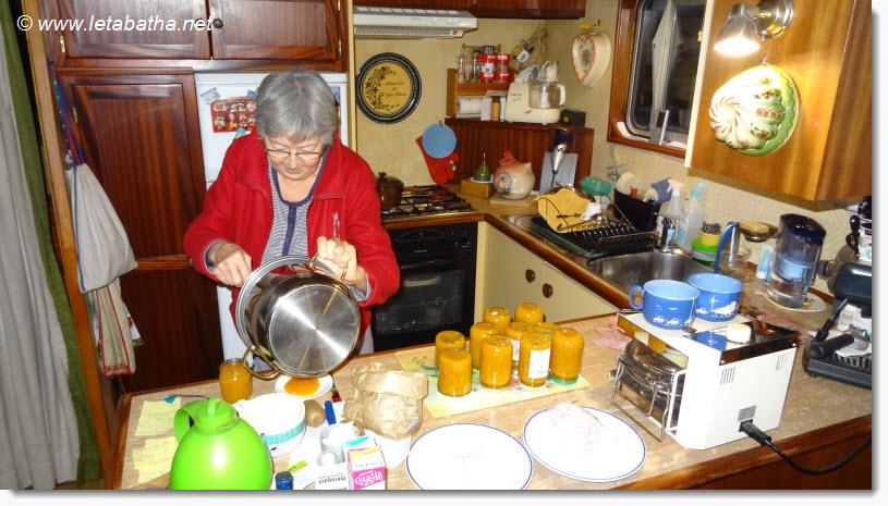 Jeudi matin, mon matelot-cuisinier a fait une dizaine de pots d'une excellente confiture aux oranges amers. On mange vraiment bien sur le Tabatha.