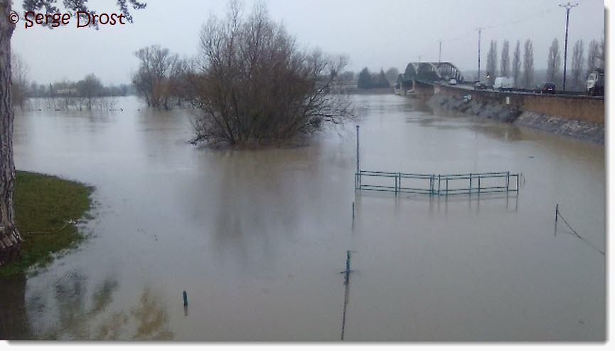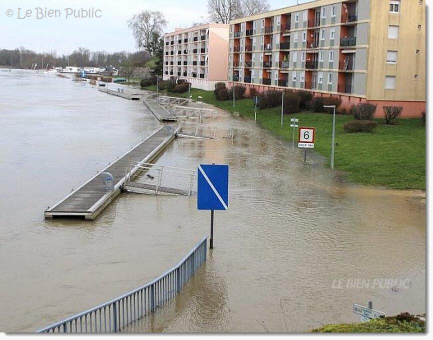 La décrue est amorcée avec le relatif beau temps qui arrive enfin. Le niveau de la Saône est monté à 4,41 m. le 26 janvier à 10h à la station de mesure de Auxonne qui correspond à notre bief.