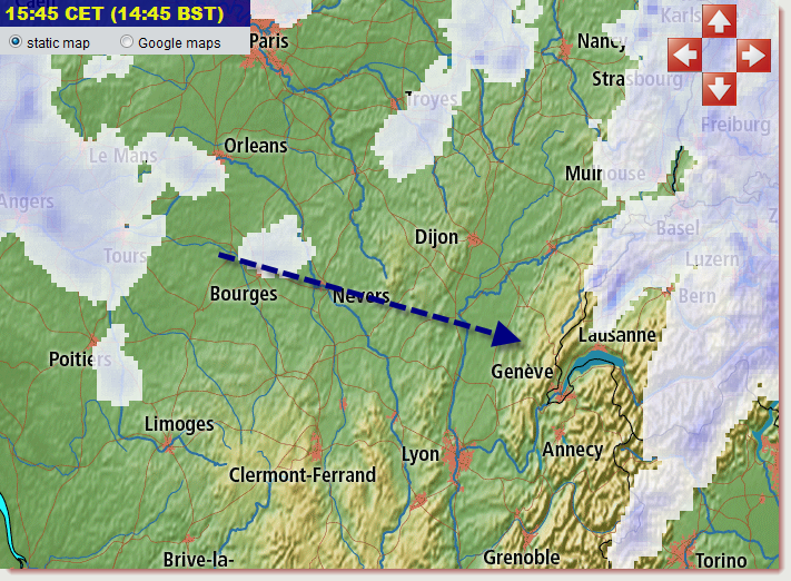 Jeudi à Saint-Jean-de-Losne le ciel restera très chargé. Très nuageux le matin, ciel voilé et de plus en plus obscur l'après-midi. Pas de précipitations. Vent faible. La fiabilité de la situation n'est pas totale, parce que l'ampleur de la couverture nuageuse est difficile à évaluer. Pour la nuit de jeudi à vendredi, ciel très nuageux à couvert. Pluie faible. Vent faible. (Source www.lachainemeteo.com)