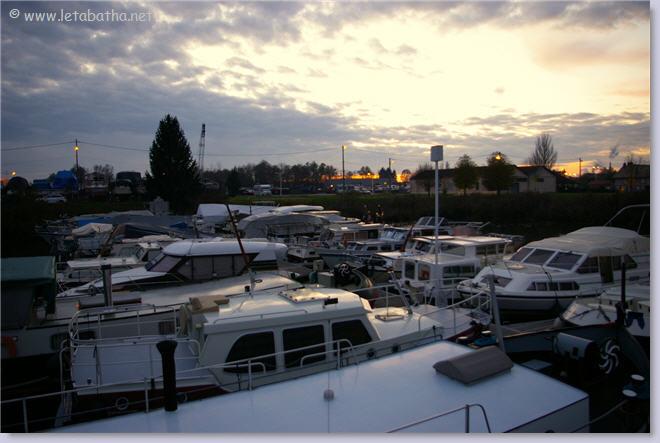 Le ciel s'est bien dégagé depuis cette nuit et il fait beau. La température est de 9° et un petit vent de secteur nord souffle 15 km/h sur le Val de Saône. Cette fois, c'est vraiment la fin de la saison car la première moitié des bateaux de Leboat sont à terre pour l'entretien hivernal.