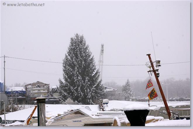 Nous avons profité du beau temps pour installer les décorations de Noël sur le Tabatha, l'équipage du Waterman ayant déjà mis les siennes dimanche !! Ca clignote partout et c'est magnifique....