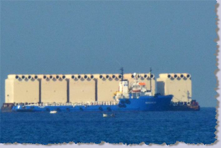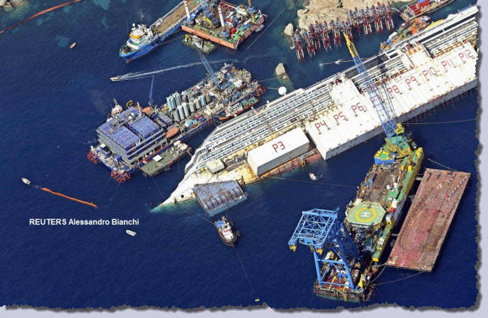 Les flotteurs qui seront fixés sur le côté tribord du Costa Concordia sont arrivés à Livourne (Italie)