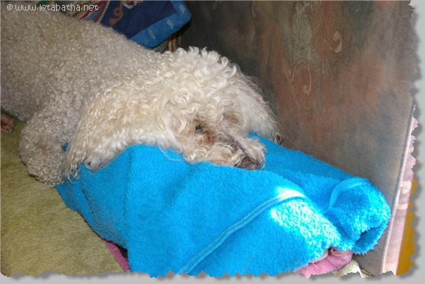 Après la promenade, Tifou est crevé et ne demande qu'à faire la sieste...
