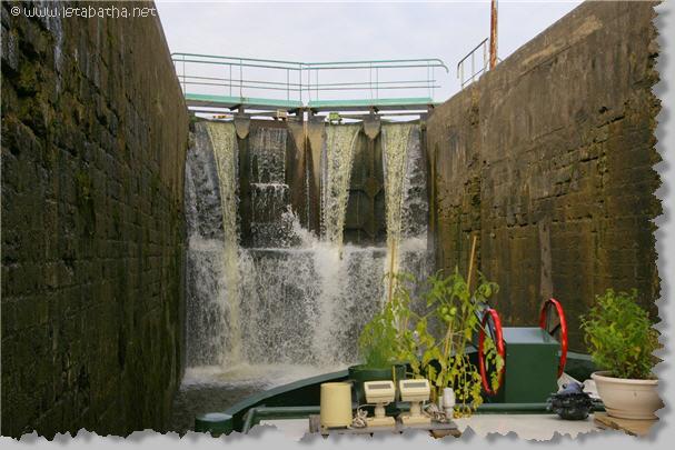 Francine s'est un peu rafraîchie sous les fuites d'eau des portes amont de l'écluse 27.... Pas très rassurée la Francine....