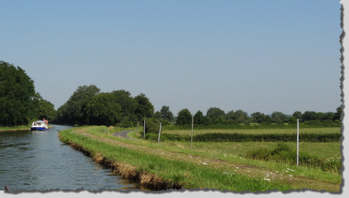 Dimanche 7 juillet Temps toujours magnifique aujourd'hui comme hier, c'est à dire grand soleil et vent modéré de secteur Nord force 4 Bf. Il fait bon à l'ombre des arbres.... Nous sommes d'ailleurs restés comme prévu dans notre coin de paradis. Quelques bateaux sont passés dont un ou deux ne savent pas que c'est sympa de ralentir à l'approche d'un bateau amarré faisant bien sûr abstraction des articles de loi !!!! Une question de savoir vivre au départ. Nous ne savons pas encore si nous partons demain ou si nous restons ici encore un jour. De toute façon, notre prochaine étape sera Paray-le-Monial pour y faire quelques courses. Cette ville se trouve à 12 km et 4 écluses.